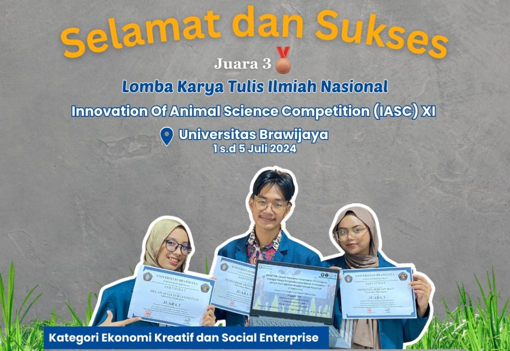 Mahasiswa S1 Peternakan FPP Undip sabet Juara 3 LKTI IASC XI di Unibraw