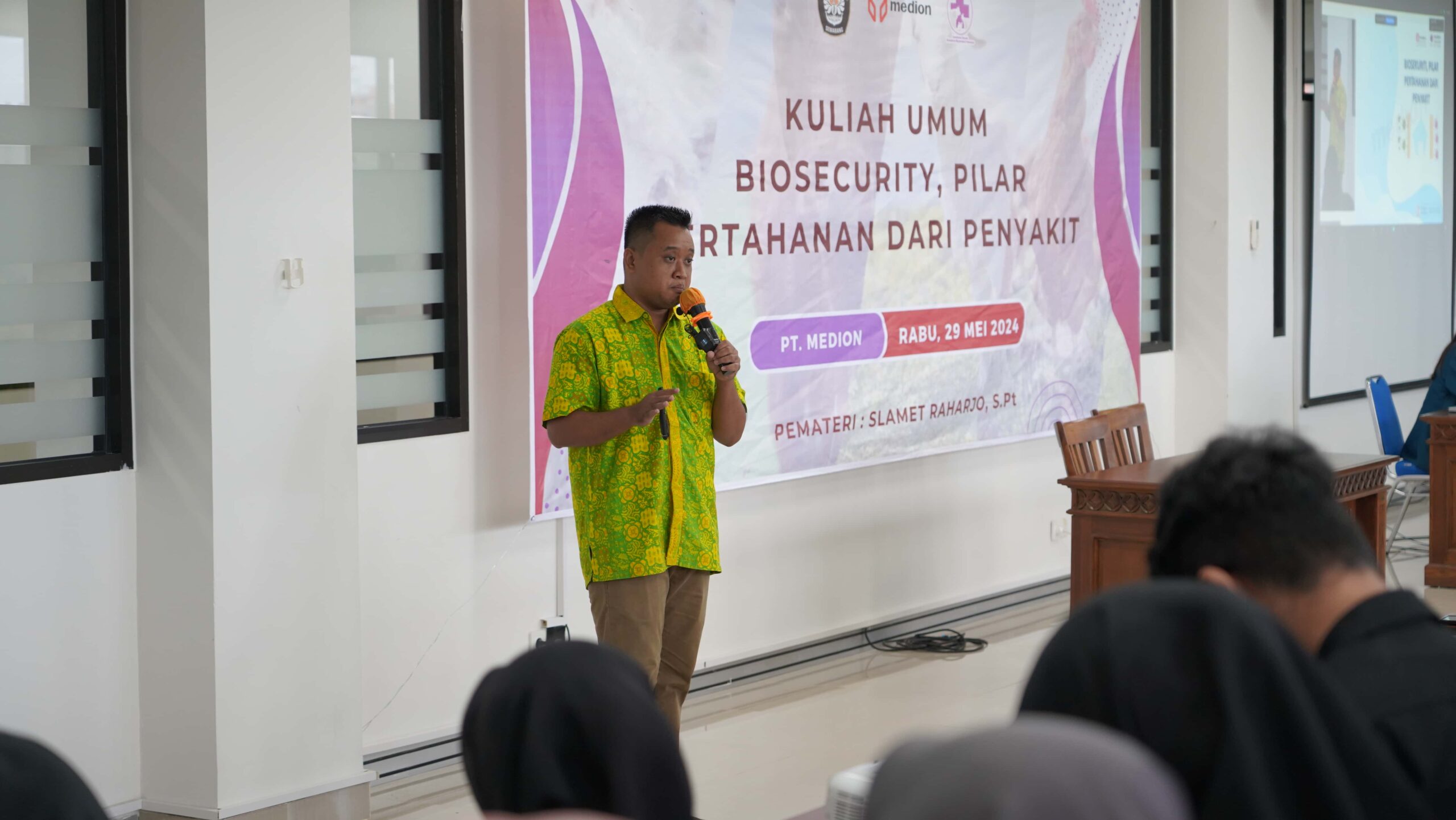 Pada Rabu (29/04) Laboratorium Fisiologi dan Biokimia yang berada dibawah Departemen Peternakan menyelenggarakan Kuliah Umum Biosecurity, Pilar Pertahanan dari Penyakit bekerjasama dengan PT Medion dengan pemateri Slamet Raharjo, S.Pt yang merupakan alumni S1 Peternakan FPP Undip Angkatan 2011. Kuliah Umum ini diselenggarakan di Ruang G302 (Ruang Teater) gedung drh. Soejono Koesoemowardojo mulai pukul 09.00 secara Luring dan Daring via Zoom.