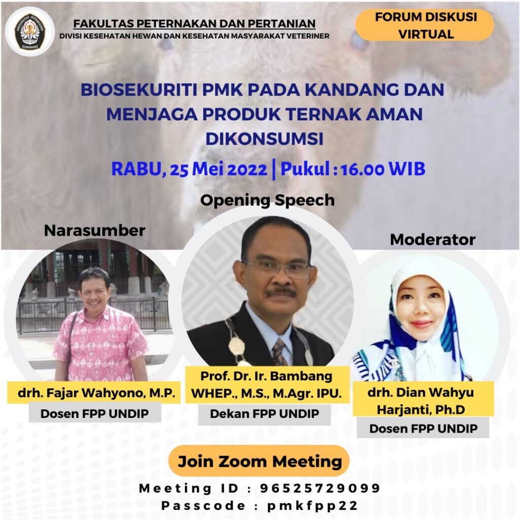 βThe Faculty of Animal Husbandry and Agriculture, Diponegoro University, through this talk show, will share experiences about Mouth and Nail Diseases with experts. Of course the hope is that livestock can be handled properly and know how to keep livestock products safe for consumption. Hopefully this event will be beneficial for all of us and […]